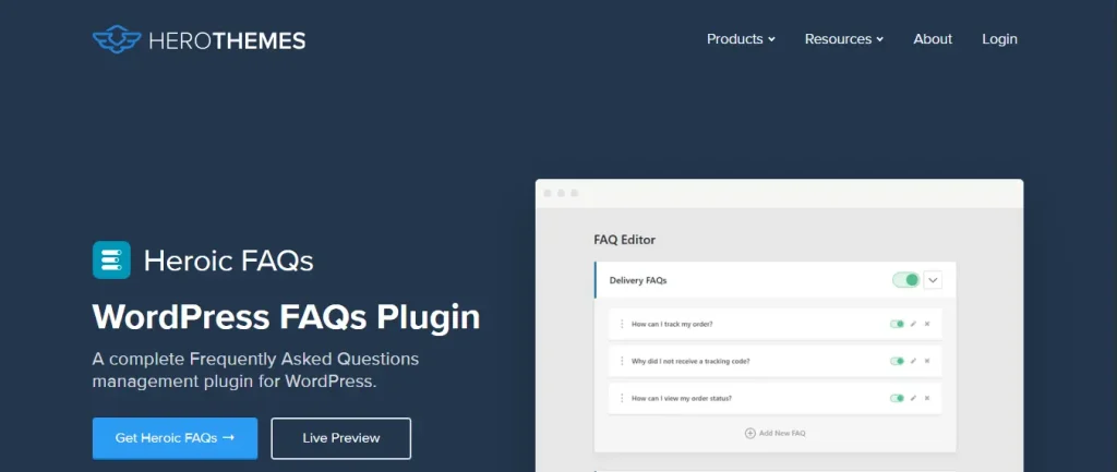 Heroic FAQs by Hero Themes is a premium FAQ plugin. It’s a complete Frequently Asked Questions management kit for WordPress.